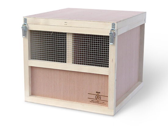 Die Rassegeflügelkisten haben alle einen klappbarem Deckel. Durch das Herausnehmen der Mittelwände kann man je nach Bedarf größere oder kleinere Abteile einteilen.