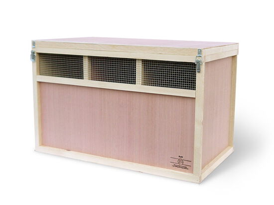 Die Rassegeflügelkisten haben alle einen klappbarem Deckel. Durch das Herausnehmen der Mittelwände kann man je nach Bedarf größere oder kleinere Abteile einteilen.