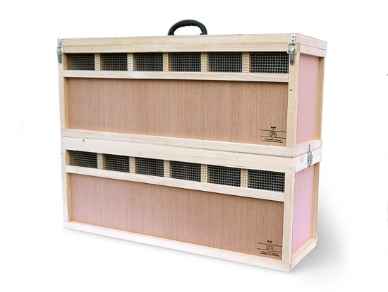 Die Rassegeflügelkisten haben alle einen klappbarem Deckel. Durch das Herausnehmen der Mittelwände kann man je nach Bedarf größere oder kleinere Abteile einteilen.